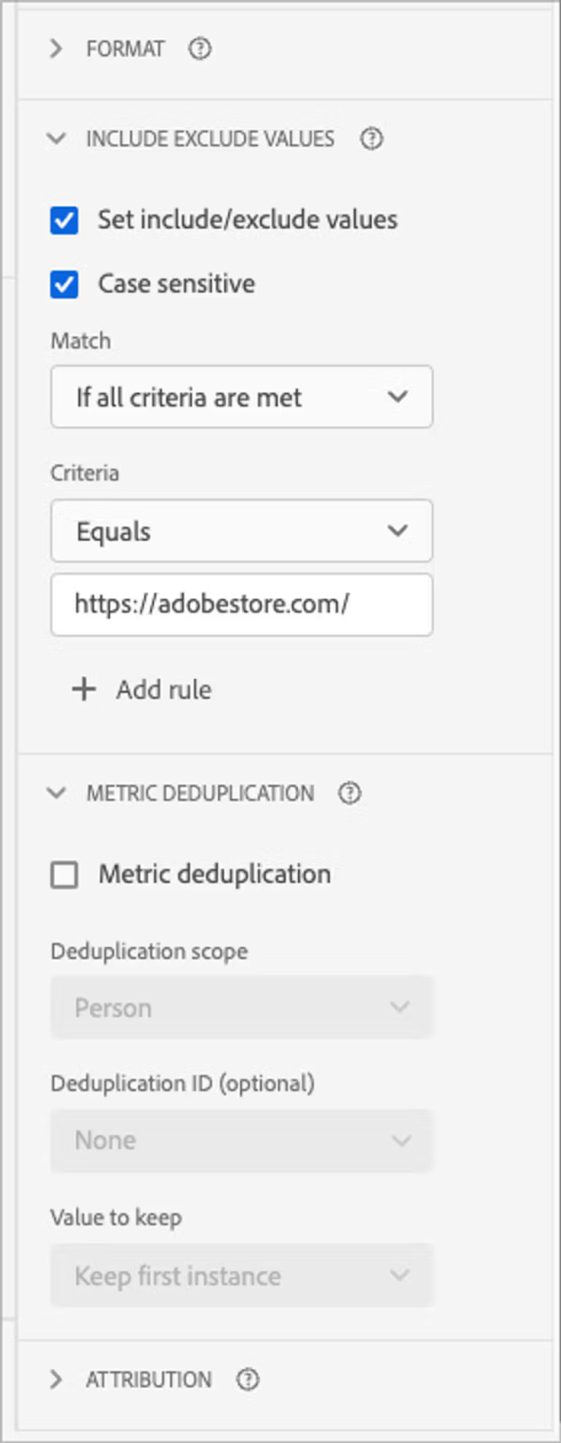 Finally, I want to filter my new Metric to just the Homepage. There are plenty of other options to consider when doing this, but for our needs, it's just a simple Include/Exclude Values filter.